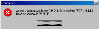 當執行VirtualDrumX的時候,如有出現錯誤訊息(如圖13)時,原因有3種: