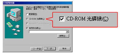 5.當搜尋到裝置時系統會要求使用者選擇驅動程式位置,請將CD-ROM光碟機選項勾選,使用者務必確實執行此步驟,才能確保鼓組裝置能使用,勾選完畢後請按下一步。(如圖9)