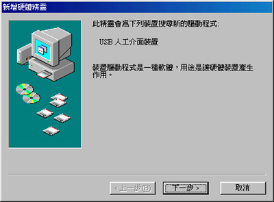 98SE類似,請依照指示執行即可完成安裝。部分作業系統若已安裝過USB裝置,則可免去上列步驟。
