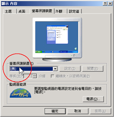 | 2.請將螢幕保護程式裝置,設定為”無”(如圖1)。 |