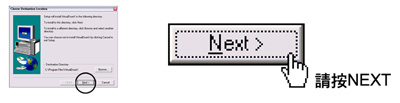 | 4.進入安裝程序後,按下”NEXT”按鈕,再按”NEXT”按鈕。 |